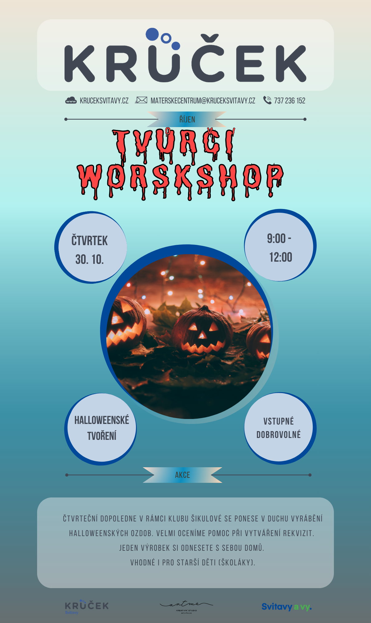 Přijďte si s dětmi užít kreativní dopoledne v duchu halloweenského vyrábění! Budeme tvořit tematické ozdoby a rekvizity – nebude chybět ani dlabání dýní.