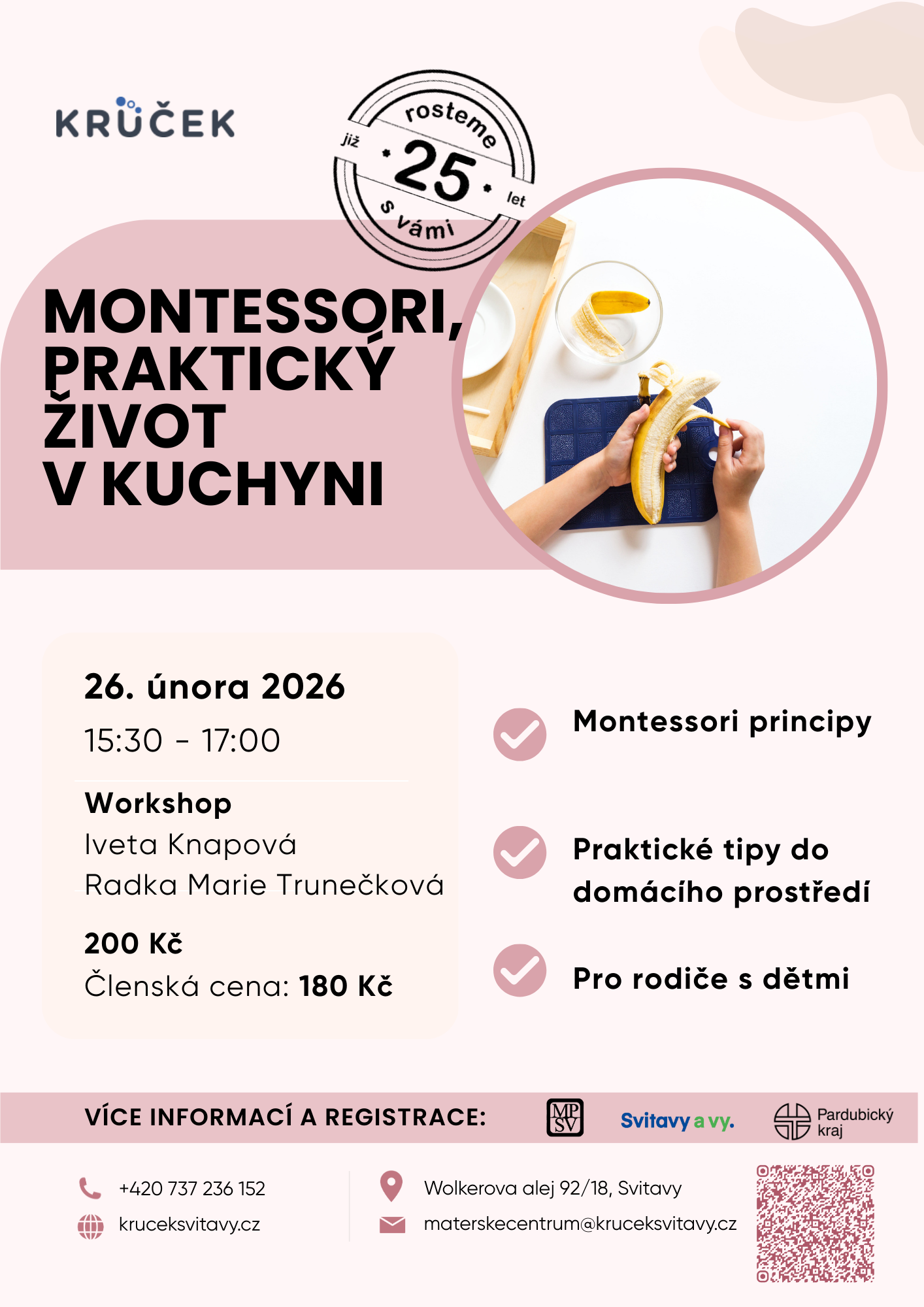 Jak zapojit děti do běžných činností v kuchyni tak, aby se učily samostatnosti, soustředění a radosti z práce? Přijďte se inspirovat Montessori přístupem v praxi.